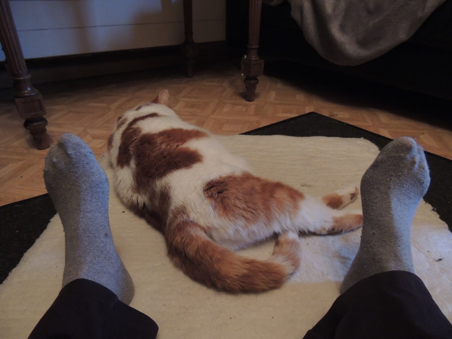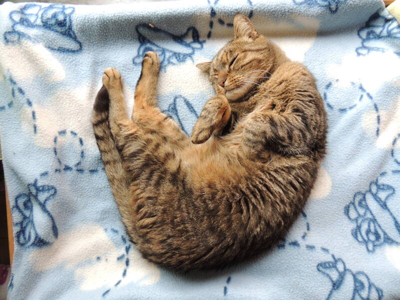 Door de dag doet hij dutjes op zijn lievelingsplekjes doorheen het huis.