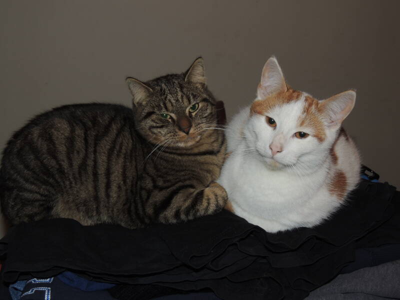 2 niet-kattenmensen in combinatie met 2 katten in een piepklein huisje, het was niet altijd even gezellig.